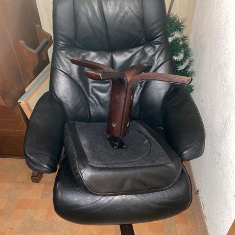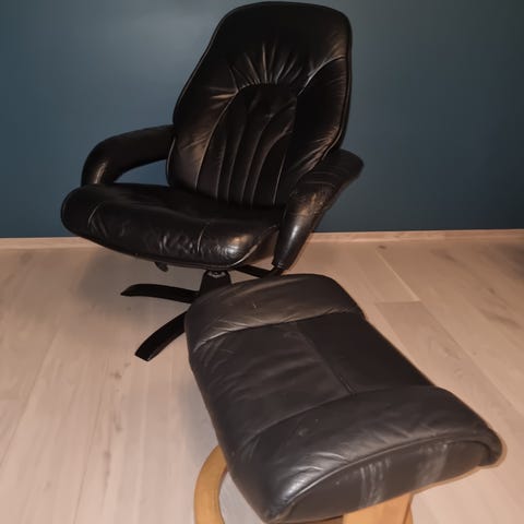 Behagelig lenestol selges. Fotskammelen har noen merker, se bilde.