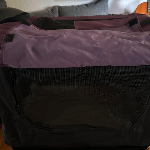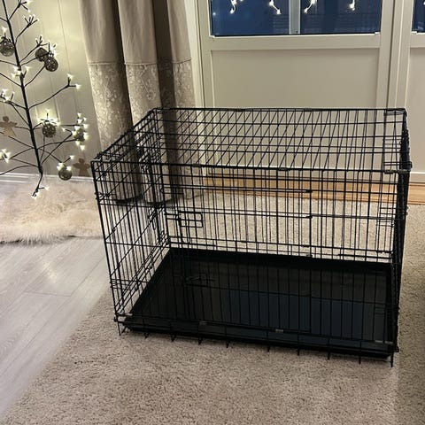 Breedesr hundebur med mål Høyde: 55 cm, Bredde: 48 cm, Lengde snitt 65 cm (Topp 78 cm / Bunn 48 cm).
