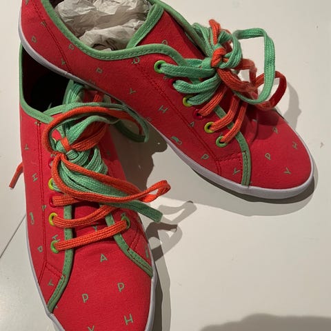 Originale tresko fra Holland, gul farge med mønster. Dem har noe bruksslitasje, men hel og pen. Herrestørrelse, ca 44-45
