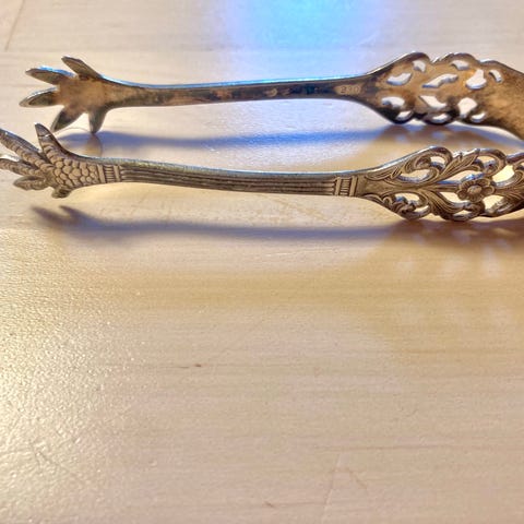 5. Norsk druesaks i sølvplett. 12,8cm. 250kr.