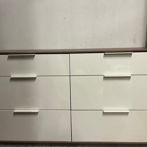 Pent brukt Nordli kommode med malte fronter i fargen Savanna sunset. Kommoden er malt i front siden den har vært en del av en plassbygd seng. Har derfor lite slitasje.