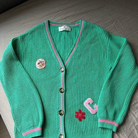 Selger en Helt ny kjempefin grønn/gul cardigan fra H&M til jente i Str. 134/140 (8 - 10 år) for kr: 75.