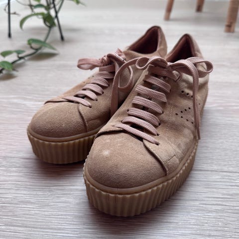 Avslappet sneaker med mykt shearlingfôr og lett EVA-yttersåle. Skoen er i semsket helskinn i en vakker grønn nyanse. Ikonisk glidelås i metall som går rundt skoen. Uttakbar, polstret innersåle gir god komfort hele dagen.