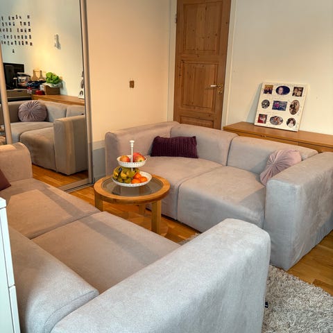 Pent brukt Bolia Cosy modulsofa med ben i eik selges billig. Sofaen er dyp og god å sitte i, og har en nydelig farge. Må ses!