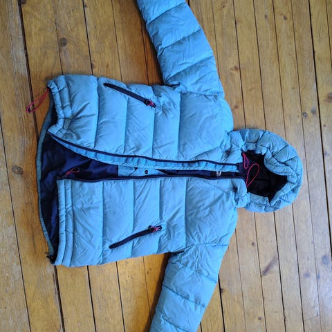 Veldig lite brukt Name it dunjakke i størrelse 122 for gutt. Jakken er svart og laget med dun som isolasjonsmateriale. Den har hette med avtagbar pelskant og elastisk snøring i midjen for bedre passform.