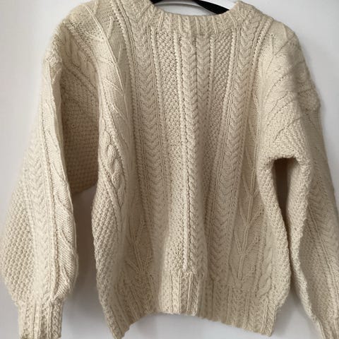 Hjemmestrikket genser i strukturmønster. Strikket i Handikraft AMIGA som er 100% akryl.