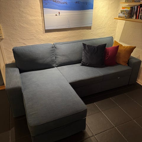 Fin sofa for dem som har litt plass. Ganske stor. . Pent brukt, har eid den I ca 1 år, men jeg kjøpte den allerede brukt så er noen år gammel. Trenger sikkert en rens. Kan demonteres I flere deler. Pris kan diskuteres om den blir hentet raskt