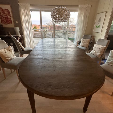 Ludwik Style, massivt eikebord selges. Hvit-oljet og robust. Behandlet pent i vårt bruk. Selges fordi vi pusser opp og ny layout endrer behovet. Tåler MYE! Passer perfekt som bruksbord.