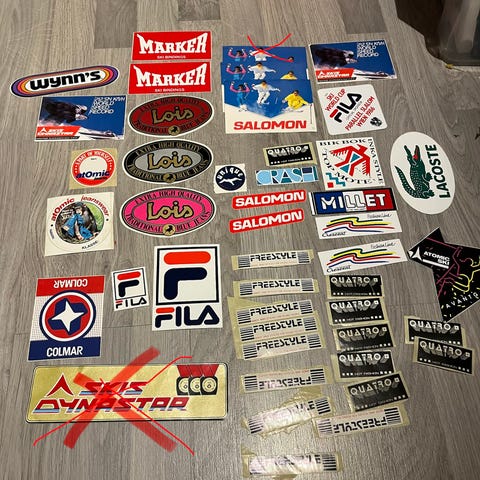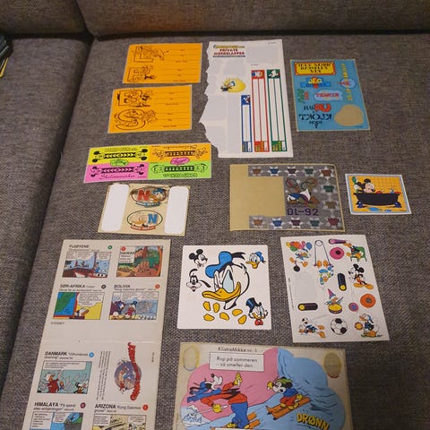 Klistremerker med ulike artister. Skuespillere, pop og rock. Ganske sikker på at de er fra Donald-blader. Nesten alle er merket med Disney og noen har en Disney-figur på brettet. Enkelte av brettene er doble.