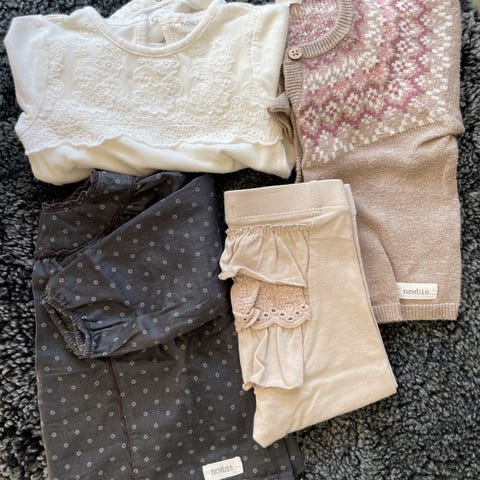 Den rosa cardigan har et knappehull som er litt for stort, kan lett sys igjen.
