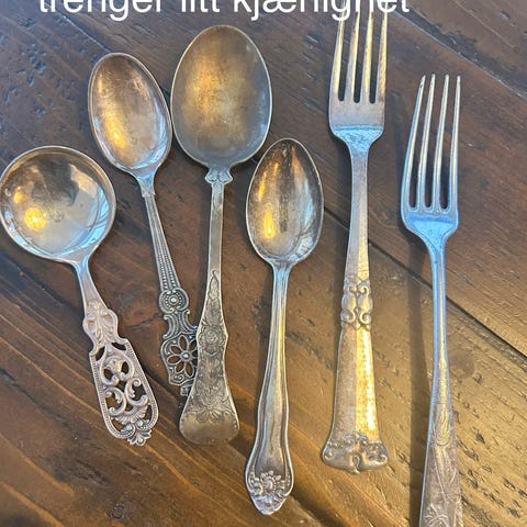 Gammelt bestikk til 12 personer i 3 deler. 90gr. Bestikket er kjøpt i sin tid hos gullsmed på Hamar.