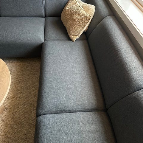 Veldig god å sitte i, enkel å holde ren og lett å style.
