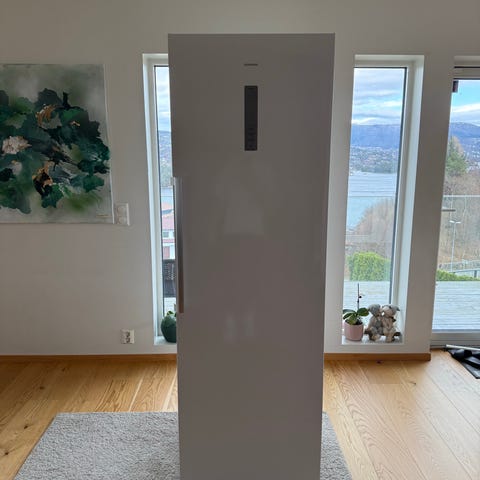 Kjøleskapet er ca. 5 år gammelt og fremstår som usedvanlig godt ivaretatt. Deler av utsiden har fortsatt beskyttelsesplast, og glasshyllene på innsiden har vært beskyttet med tykk plast, noe som gjør at de er i svært god stand. Kjøleskapet har fungert helt feilfritt hele tiden, med stabil temperatur og stillegående drift.