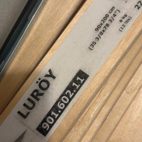 IKEA Luröy sengeramme med lameller i tre. Til 80 cm bred seng.