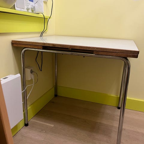 Et fint respatex bord med en stor flekk. Hentes på Grünerløkka