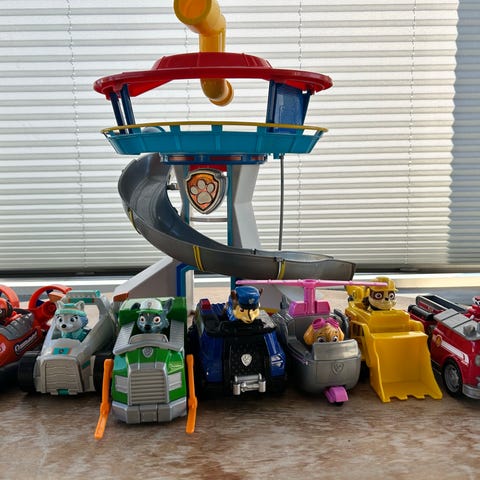 Paw Patrol lekesett med flere figurer og kjøretøy. Settet inkluderer karakterer fra Paw Patrol-serien samt ulike typer kjøretøy som fly og biler. Passer for barn som liker lek med figurer og kjøretøy.