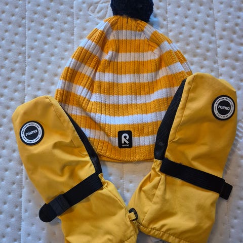 Reima sydvest hatt og ubrukte regnvotter