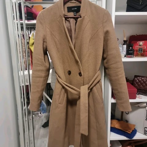 Kåpe/jakke i vattert stoff m/avtagbar ‘pelshette’.