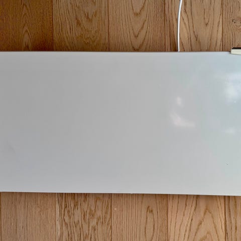 Tynn panelovn med stilig, moderne design. Denne panelovnen fra Mill har en effekt på 600 watt og er utstyrt med en termostat som gjør det enkelt å kontrollere temperaturen. Egen funksjon for smart dag- og nattsenking, se bilde. Veggfeste er inkludert og ovnen passer rom på 8-10 kvm. Også godkjent for våtrom. Høyde 40 cm bredde 60 cm. Selges da vi har fått varmepumpe.