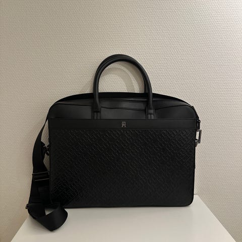 Som ny. Kun brukt en gang (jeg er ikke så rød av meg). Kul, litt retro dokumentmappe. Flere innvendige lommer, en med glidelås. Plass til pc/ipad. Original pose følger med.