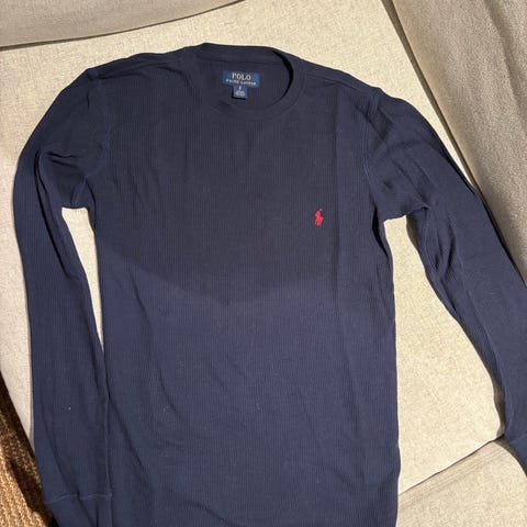 Ralph Lauren Polo genser i blå farge. Genseren er i størrelse S og er designet for menn.