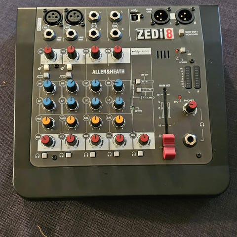 Allen & Heath ZED-6 lydmikser med flere innganger og utganger, inkludert XLR- og jack-tilkoblinger. En kompakt mikser egnet for lydmiksing i ulike sammenhenger.