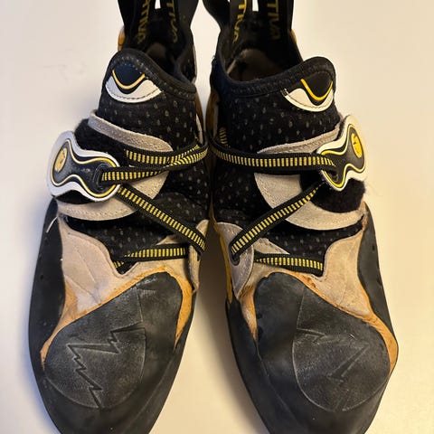 Selger mine La Sportiva Solution klatresko str 43 1/2. De ble kjøpt et par år tilbake, men var dessverre litt for små for meg. De er bare testet et par ganger, men ellers aldri brukt ordentlig. Kommer med eske.
