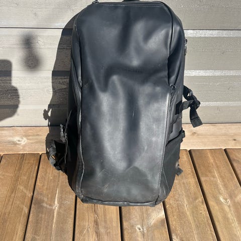 Ryggsekk i grå farge. Ryggsekken har justerbare stropper og flere lommer for oppbevaring. Materialet er robust og vannavstøtende, egnet til skolesekk.