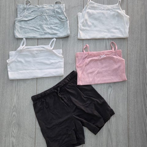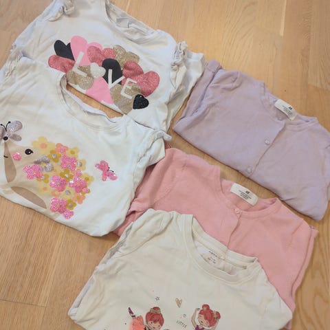 H&M Jente barneklær i størrelse 122 og fargen rosa. Plagget er designet for barn og har detaljer som langermet overdel med trykk og tyllskjørt. Pent brukt ballett kjoler x 3 str 122/128 og et par ballett/turn sko str 30/31.