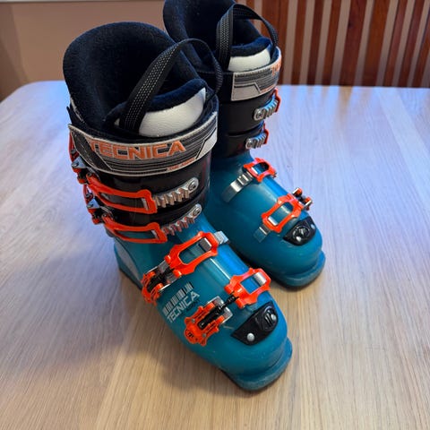 Salomon skistøvler i størrelse 37 1/3, farge svart. Skistøvlene har flere spenner for justering.