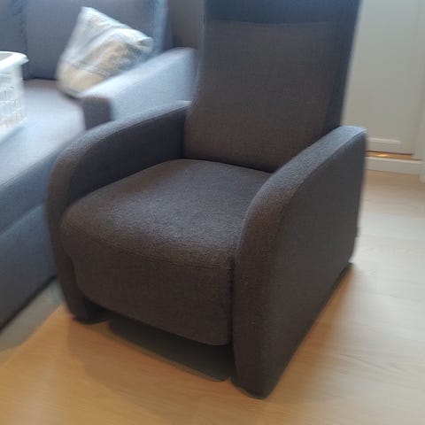 Pent brukt recliner med fotstøtte. Alle funksjoner fungerer som det skal