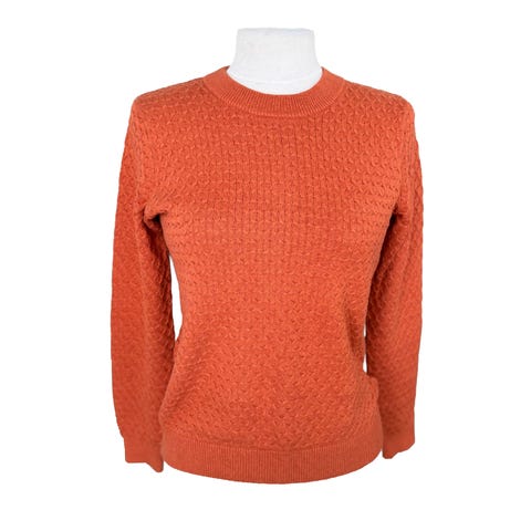 Klassisk strikket genser fra Jean Paul. Rund hals og nydelig dyprosa farge. Ribbestrikk rundt halsen, på ermene og på kanten nede. Fin struktur og behagelig å ha på seg.