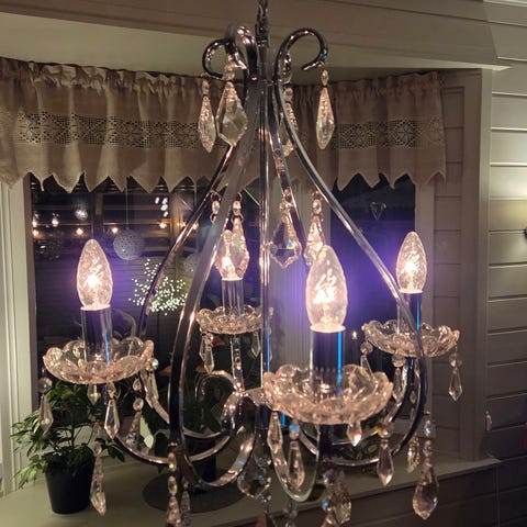Bruker GU5.2-pærer (forskjellige pærer gir litt ulikt lys i bildet, disse har fungert helt fint for oss og følger med, men kan selvfølgelig byttes ut).