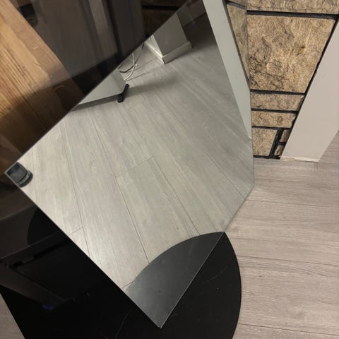 Speil størrelse 75 x 100 cm. Fra 80/90-tallet men i god stand. Lite merke i det ene hjørnet, men er ikke sprekk i selve glasset. Kan henges begge veier.