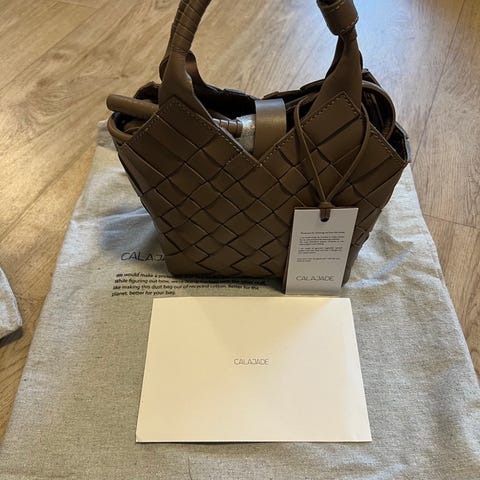 Cala Jade Misu Mini veske som er nærmest ubrukt. Vesken har et flettet design og to håndtak, samt en skulderrem.