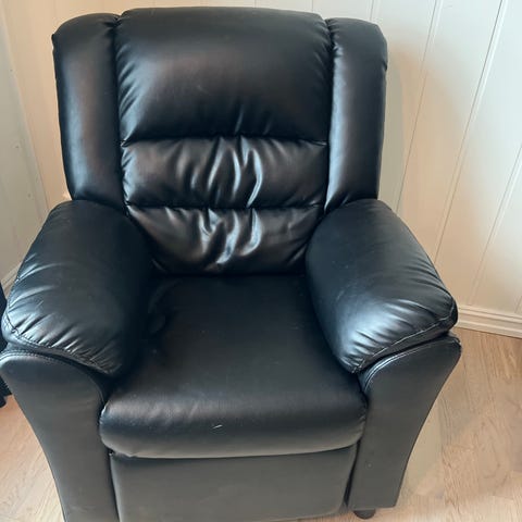 Sømmen har gått litt opp ved fotstøtten, men synes bare når stolen er utslått.