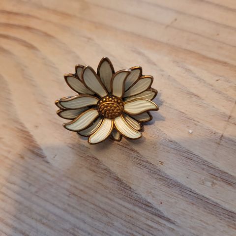 David-Andersen Sølv brosje for dame. Brosjen har form som en blomst med detaljer i hvit emalje og gullfarget midtparti. Laget i sølv, egnet som tilbehør til ulike antrekk.