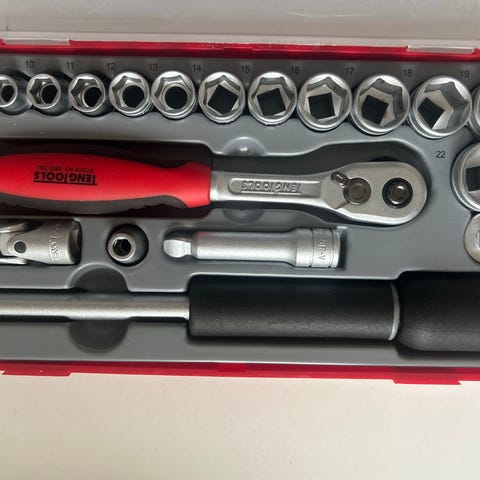 Teng Tools T1436 1/4" pipesett selges som vist på bilder. Settet mangler 3 små unbrako-nøkler men er ellers komplett og svært lite brukt.