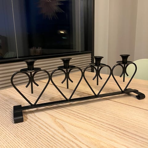 Selger vegglysestake i smijern, ca. 55 cm. Enkel og dekorativ modell i svart metall, passer fint i stue, gang eller soverom. Pent brukt og i god stand. Enkel å henge opp på vegg. Må hentes