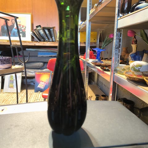 Kjempestor og massiv kunstglassvase i nydelig fargekombinasjon (28 cm H)