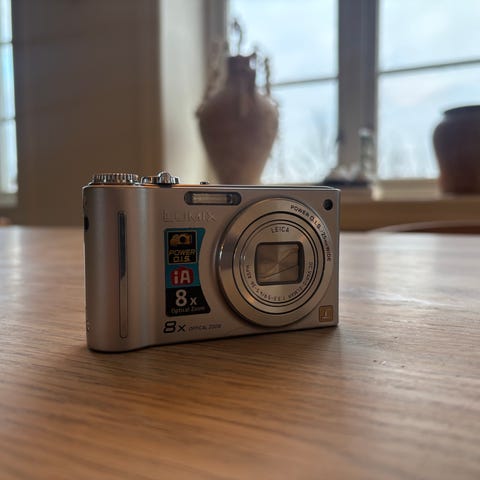 Retro Panasonic Lumix digitalkamera. 14MP objektiv fra Leica. Følger med lader minnekort og etui.