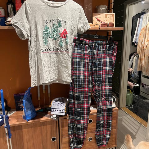 Snøfnugg pysj: Selger denne lite brukte pysjamasen med snøfnugg mønster. Den har ingen bruksmerker grunnet at den kun er brukt et par ganger. Den er i størrelse XS’ men passer et eldre barn. Selges for 90kr.