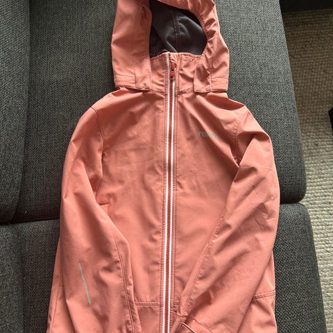 Reima skalljakke i elegant fasong. Litt lenger enn vanlig jakke. En del flekker / bruksmerker. Se bilde. Men fortsatt mye bruk igjen :)