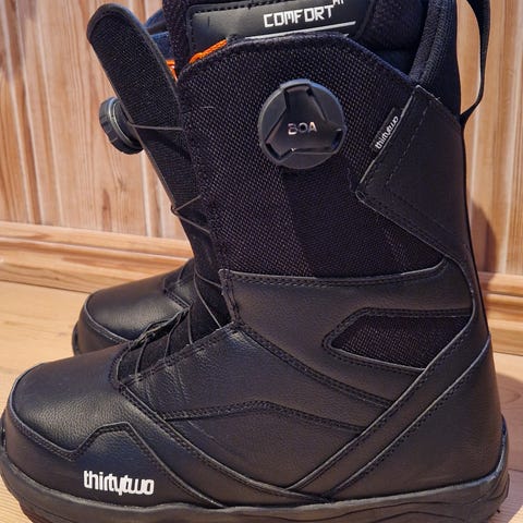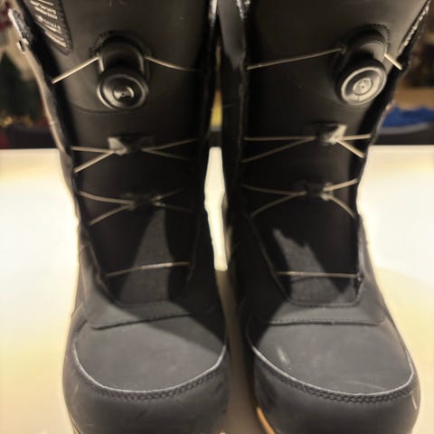 Burton Ion snowboardstøvler for herre i størrelse 43,5. Støvlene har svart ytterside med grønn innside og er designet for bruk i snøbrettaktiviteter. Disse er mer stiv enn myke og gir god støtte ved bruk. Jeg bruker størrelse 42 i vanlige sko og opplever Burton støvler som litt små på størrelsen.
