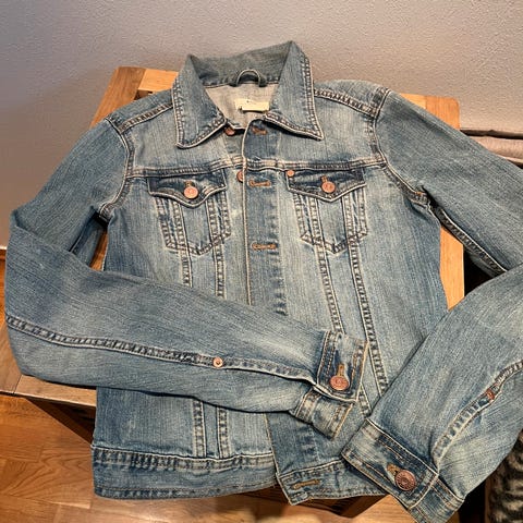 Jeansjakke fra Divided. Den er litt kortere, slik at den passer perfekt til skjørt eller kjole. Str 38, men oppleves litt mindre.