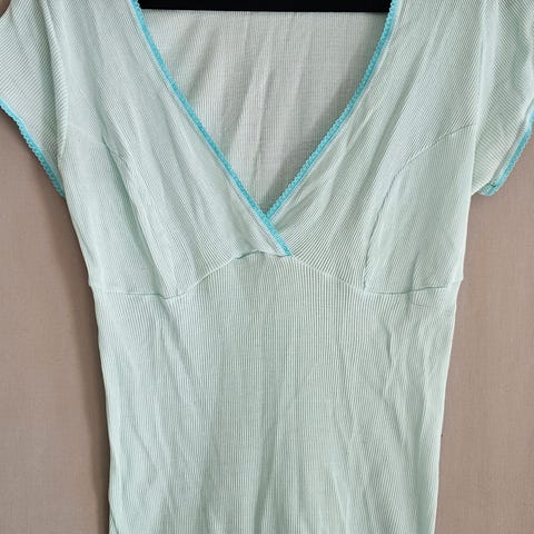 Selger en ubrukt tshorte/topp fra second female. Den er i en nydelig blåfarge og størrelse m. Modellnavn er miami sweat tee, laget av 70% bomull og 30% polyester.