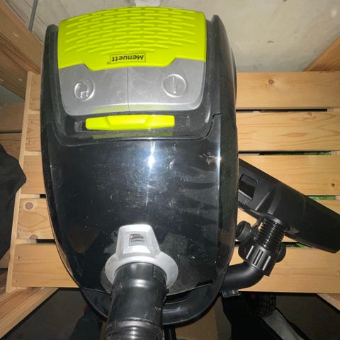 Følger med poser og et extra munnstykke. (Munnstykke mangler et hjul) Ellers er den helt grei. Er selvfølgelig brukt, så funker ikke helt 100%. Men den gjør jobben sin.