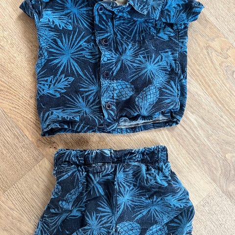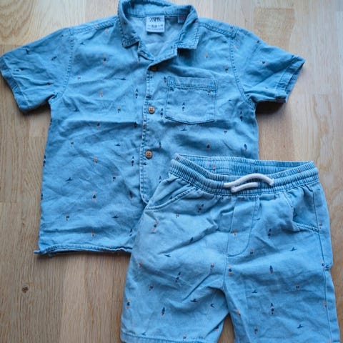 Skjorten er str 116 og shortsen er str 110, men disse er brukt sammen da jeg syntes skjorten var litt liten i str.