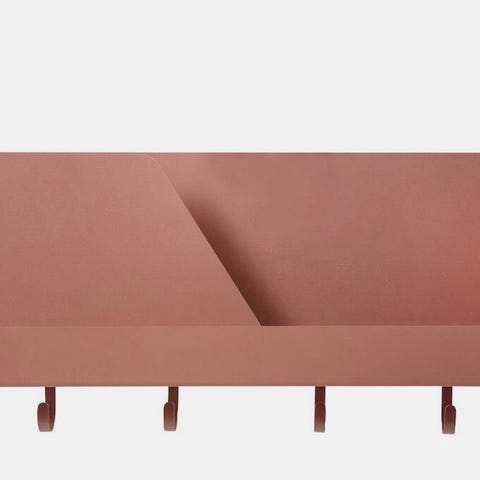 Nydelig og dekorativ hylle/vegghylle i hvitt metall med dekorasjon av blader. Hel og pen, men enkelte bruksspor forekommer.