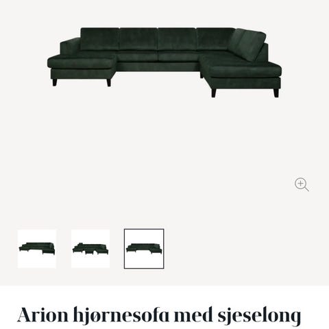 Alna hjørnesofa fra Hugna med sjeselong. Mørk grå velour. Ingen skader eller slitasje. Lengde 2,6m, sjeselongdel 2,1 m. Kostet ny 11.000,-